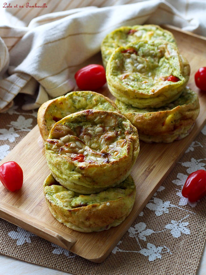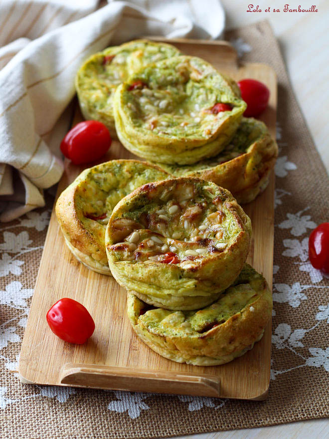 Quiches sans pâte aux tomates cerises, pesto & feta