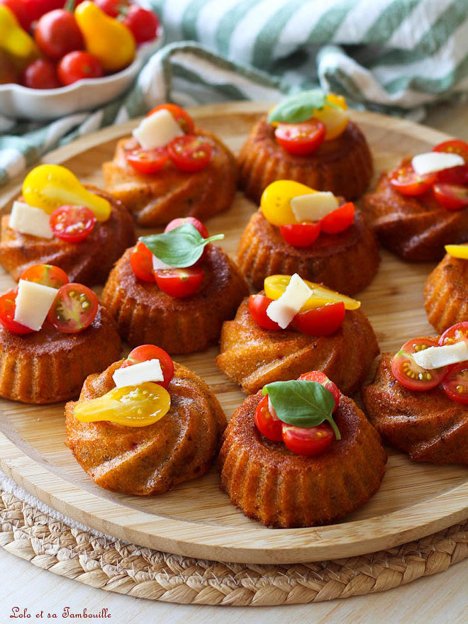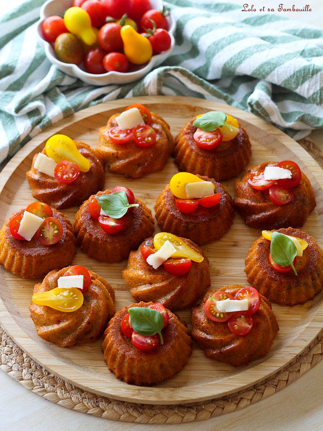 • Laisser complètement refroidir avant de venir déposer dans le creux, des tomates cerises coupées en deux et quelques copeaux de parmesan et des feuilles de basilic.