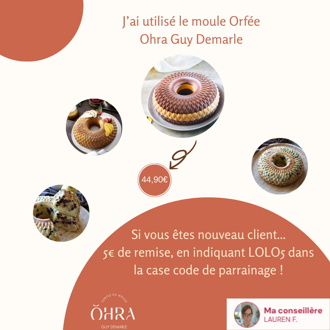 J’en ai profité pour étrenner un de mes nouveaux moules reçus dernièrement, et ce moule Orphée Ohra Guy Demarle, un moule signature d’Hélène Darroze qui l’a imaginé. Ce moule est tout simplement splendide et vous risquez donc de revoir passer des recettes réalisées dans ce dernier très prochainement 😉
