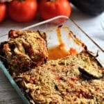 Vous pouvez aussi à la place de la chapelure, recouvrir le plat avec une boule de mozzarella effilée avant d’enfourner.Vous pouvez également utiliser des tomates fraîches à la place des tomates pelées, dans ce cas il vous faudra les émonder (les plonger 40 secondes dans une eau bouillante puis 30 secondes dans de l’eau froide), les épépiner et les couper en gros morceaux.