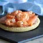 baies roses, blinis, crevettes, fromage frais, saumon fumé