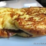 Faire chauffer une noix de beurre dans une poêle et y faire revenir "les sandwich de brioche" de chaque côté pendant environ 2 minutes.
