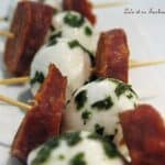 Sur chaque brochettes, piquer une tranche de chorizo puis une boule de mozzarella.