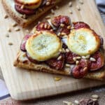 Couper le fromage de chèvre en deux et disposer 2 moitié sur chaque tartine.