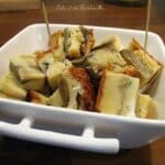 Couper l'aubergine dans la longueur en tranche d'environ 2mm d'épaisseur.