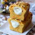 Parsemer le dessus du cake de quelques noisettes concassées.