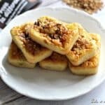 crème fraîche, pâte à tartiner, pépites de nougatine, pommes