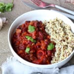 Servir bien chaud, parsemé de coriandre, avec du riz ou du quinoa.