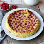 A bout des 20 minutes, parsemer le dessus du clafoutis avec le sachet de sucre vanillé.