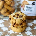Concasser grossièrement les noix de macadamia, et en ajouter sur les cookies en les enfonçant un peu.