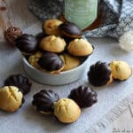 Avec une petite spatule, mélanger un peu le chocolat puis y déposer une coquille en appuyant légèrement.