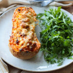 Répartir ce mélange dans les moitiés de butternut évidées.