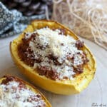 Garnir les deux moitiés de courge spaghetti avec cette préparation.