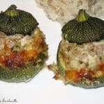 Remplir les courgettes évidées avec la farce et réserver le restant.