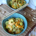 coriandre, crevettes, curcuma, échalotes, lait de coco, noix de cajou