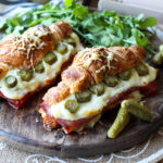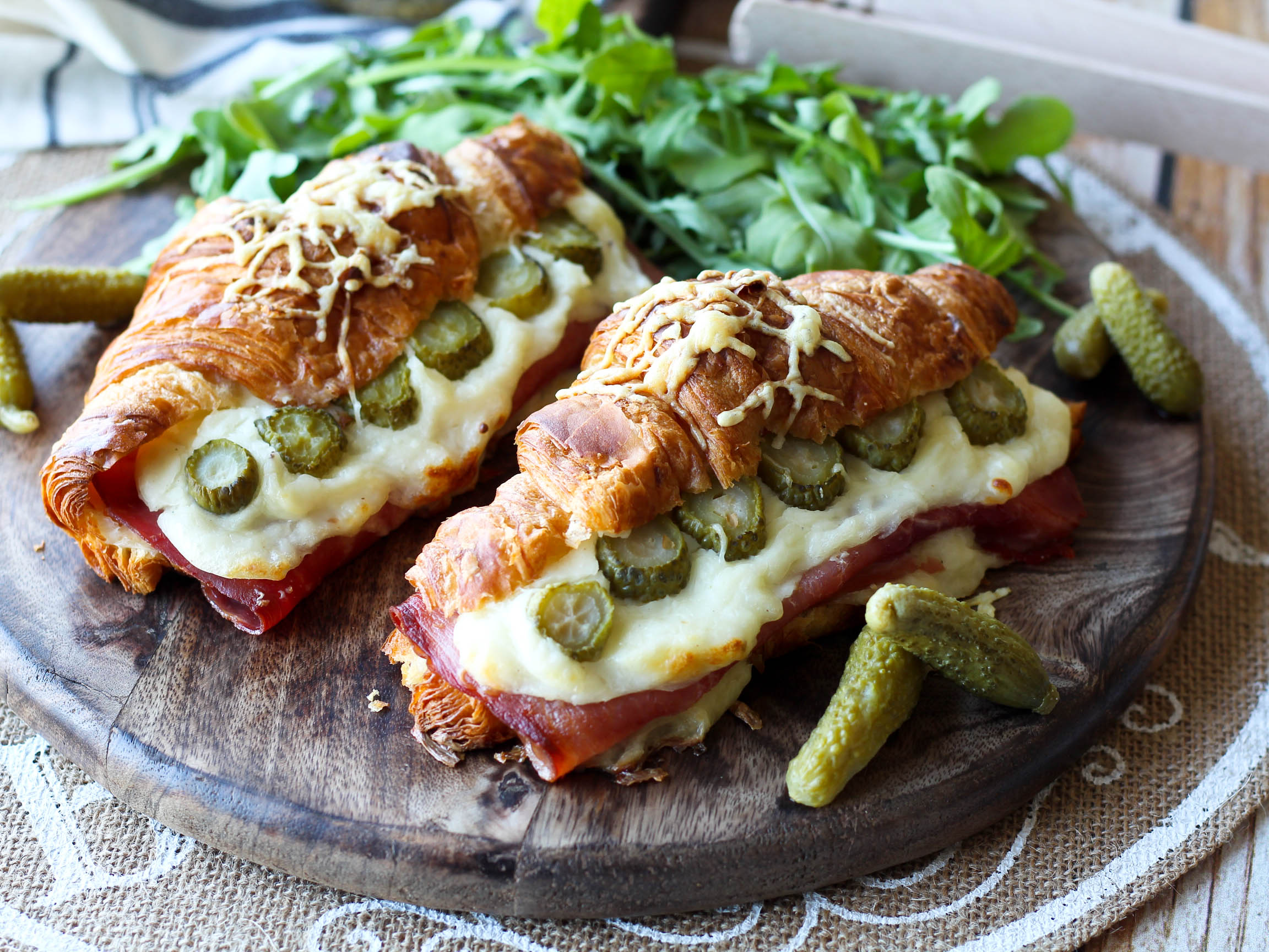 Déposer quelques rondelles dans chaque croissant, sur la béchamel.