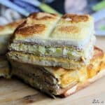 Reposer dessus 2 tranches de jambon puis 4 tranches de cheddar et le restant de poireaux.