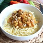 Servir le curry posé sur les nouilles chinoises, parsemer de noix de cajou et régalez-vous.