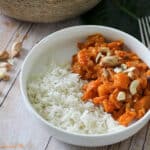Parsemer de noix de cajou torréfiées et servir accompagné de riz ou de semoule.