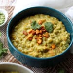 Couvrir d'eau à hauteur, ajouter le cube de bouillon de légumes et laisser mijoter à feu moyen environ 45 minutes jusqu'à ce qu'il n'y ait plus de liquide et que les pois cassés soient cuits.