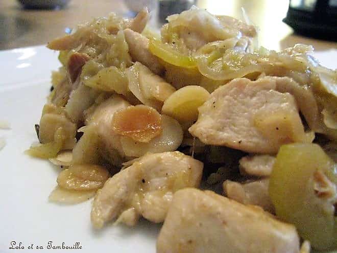 Emincés de poulet miel et amande sur lit de courgettes