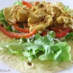 Des fajitas garnies très simplement de poulet parfumé au curry. De quoi faire voyager les papilles !