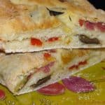 Disposer quelques morceaux de coppa et des légumes grillés sur la partie supérieur, replier la partie vide dessus puis replier en 3 dans l'autre sens.