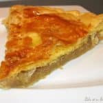 Dérouler une pâte feuilletée et y répartir la préparation dessus en prenant soin de laisser un bord de 2 cm environ.