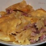 Répartir la moitié dans un plat à gratin puis recouvrir avec des tranches de fromage à raclette.