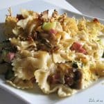 Gratin de pâtes aux champignons, courgette & dés de jambon