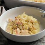 Incorporer la crème fraîche (ou le fromage blanc) mélanger à nouveau puis disposer le tout dans un plat allant au four.