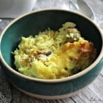 Enfourner pour environ 20 minutes à 180°C puis 10 à 15 minutes à 200°C jusqu’à ce que le dessus soit doré.