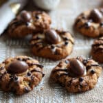 Sur chaque cookies, déposer dans le creux 1 peu de caramel au beurre salé et y déposer une œuf en chocolat.
