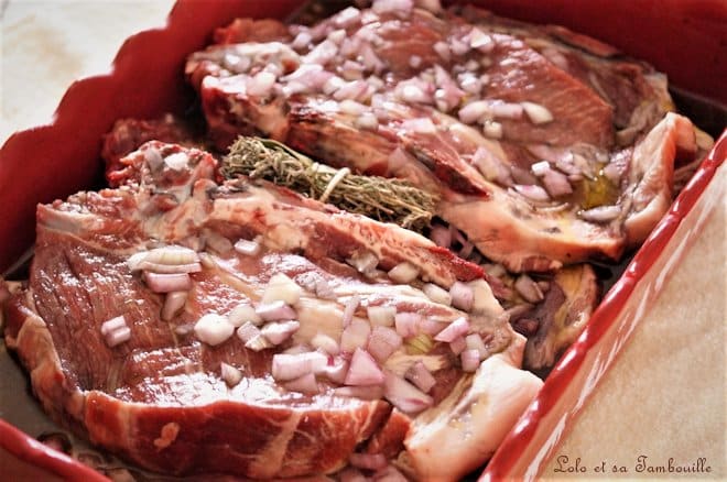 Verser la marinade dessus et ajouter un bouquet garni dans le plat.