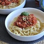 ail, basilic, origan, pignons de pins, piment, thon, tomates concassées