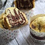 Dans chaque moule à muffins ou caissettes en papier, verser une cuillère à soupe de pâte à la vanille puis une cuillère à soupe de pâte au cacao en prenant soin de verser la pâte au milieu.