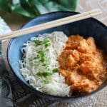 Servir accompagné d'un riz basmati ou comme ici de nouilles chinoises.