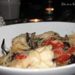 Faire chauffer de nouveau 1CàS d'huile puis y mettre le gingembre, l'ail, le piment, les shiitakes et les oignons.