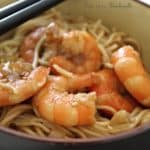crevettes, gingembre, graines de sésame, miel, nouilles chinoises, sauce soja