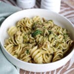 Porter le tout à ébullition et laisser cuire environ 20 minutes, jusqu'à ce que toute l'eau ai été absorbée et que les pâtes soient cuites.