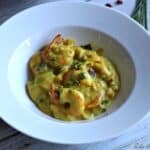 ail, ciboulette, courgette jaune, cranberries, crème liquide, crevettes