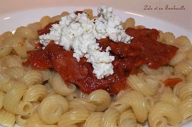 Les égoutter puis les disposer dans les assiettes. Répartir un peu de sauce sur le dessus puis émietter un peu de féta.