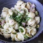 Pâtes aux fèves & lardons