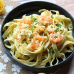 ail, ciboulette, crème liquide, crevettes, parmesan, vin blanc sec