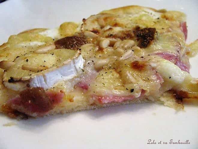 bacon, chèvre, figues, fromage blanc, miel, pignons de pin