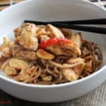 Servir bien chaud accompagné de pâtes chinoises, comme ici de ramen ou à défaut de riz..