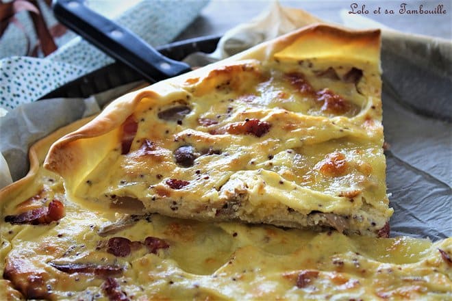Quiche aux lardons, champignons & moutarde à l'ancienne