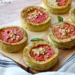 Disposer une rondelle de tomate dans chaque empreinte, sur la préparation.