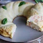 Ajouter le fromage râpé, les crevettes (coupées en morceaux ou non, pour moi entières), le saumon et le basilic ou la ciboulette.