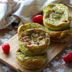 Répartir dans chaque empreinte les tomates cerises préalablement coupées en deux.